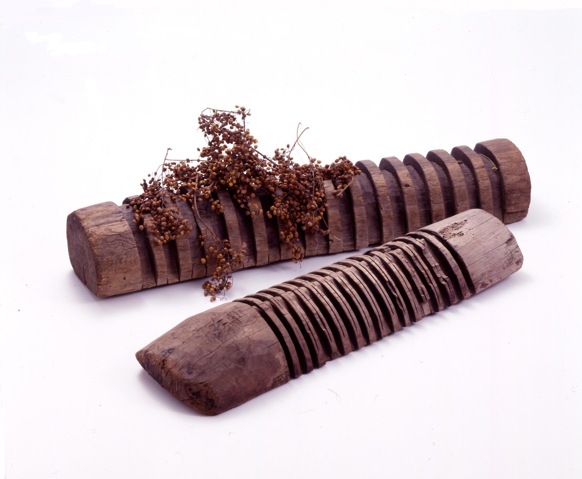 このようにウルシの実から蝋を生産した道具である「二戸地方の漆蝋関係資料」は、盛岡藩の重要な産物であった漆蝋の生産過程などを考える上で重要な資料です。